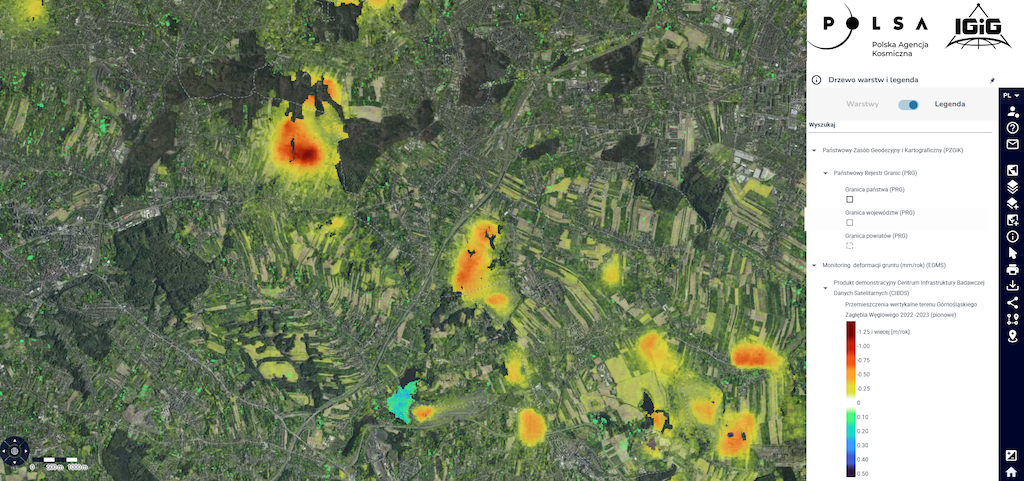 Produkt demonstracyjny - mapa przemieszczeń terenu dla obszaru Górnośląskiego Zagłębia Węglowego już dostępna w NSIS!